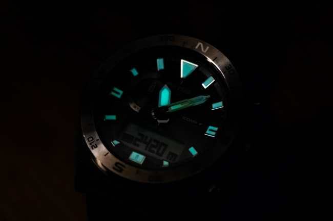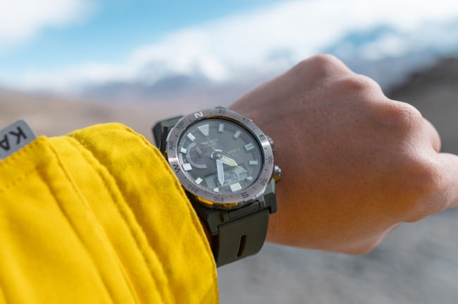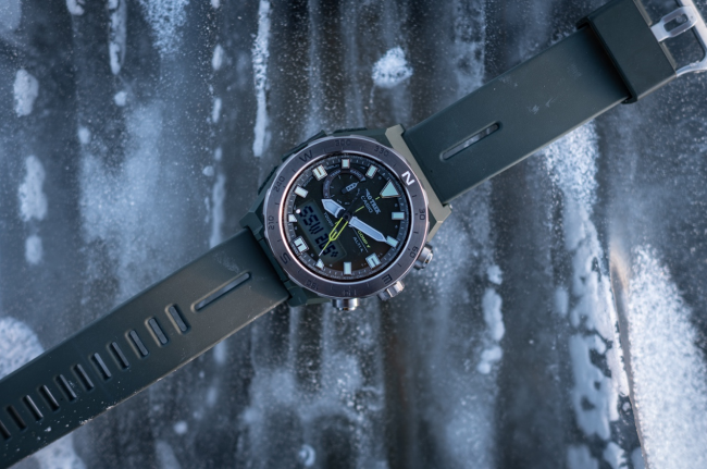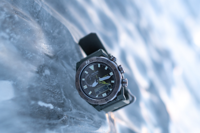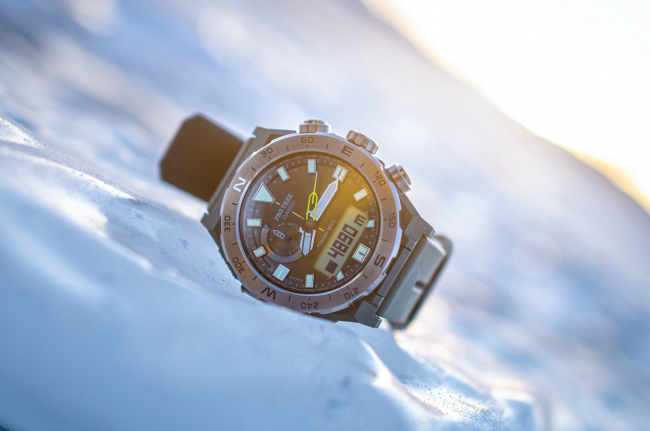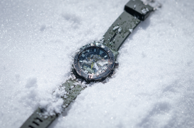 与此同时,PRW-6800Y-3还在表盘周围配备了夜光刻度,可以让使用者在光线昏暗环境下轻松读取手表信息。