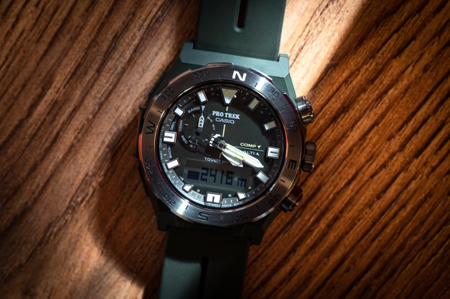 作为一款专业的户外手表,或许很多人会觉得只有在户外探险时才可以佩戴,其实卡西欧PRO TREK系列的颜值,同样能让使用者在日常场合中佩戴,手表的外形上无处不彰显着硬派的气质。