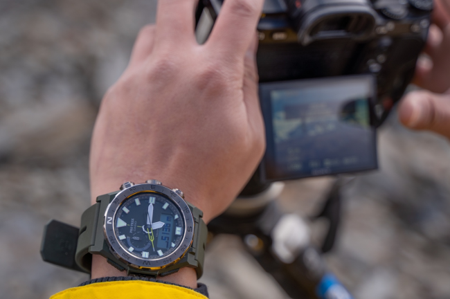 在户外风光拍摄中,大家所看到震撼人心的自然画面往往都需要经过跋山涉水、掐时掐点才能给大家呈现,完全不是大家脑海中想象的那么轻松。就好比我们在西藏地区取景往往都需要驱车数百公里才能寻找到我们想要的画面,在户外探险的途中,一款户外手表就可以让我们便捷且全面地了解时间等信息,这也是我喜欢在拍摄的途中佩戴PRW-6800Y-3的重要原因。